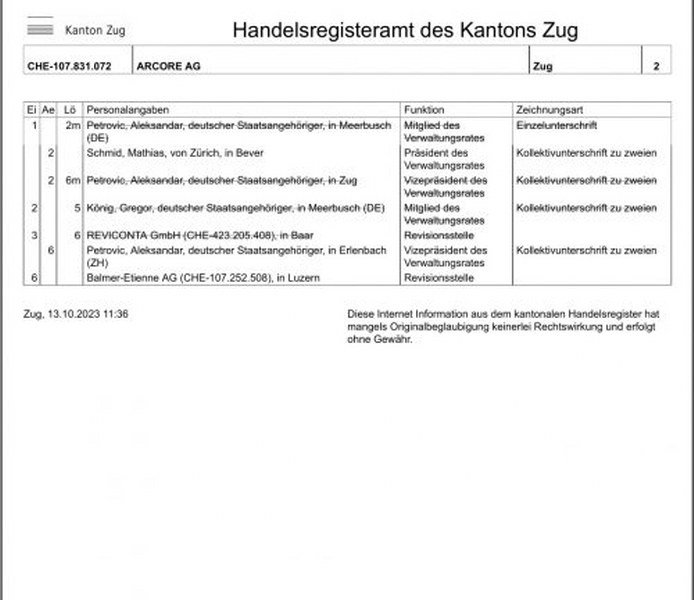 Iza of-šir firme ARCORE AG, koja je registrovana u poznatoj of-šor zoni CUG u Švajcarskoj, stoji izvjesni Aleksandar Petrović, a sve je urađeno, kao i u slučaju Batagon, da se prikrije stvarni kapital. Prema mojim saznanjima iza svega stoji američki, kao i kapital domaćih tajkuna i moćnika koji žele da unište Majevicu kako bi obezbedili litijum za evropske koncerne, a ovo je jedan od tajnih dilova iza kulisa koji je Dodik postigao sa strancima kako bi mu omogućili opstanak na vlasti.