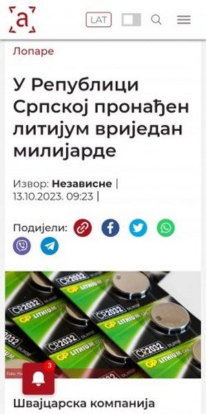 Iz Švajcarske, od starih i pouzdanih izvora i operacije „Batagon“, dobio sam ekskluzivno dokumentaciju o pozadini nove tajne Dodikove operacije „litijum“ na Majevici i dogovoru koji je postigao sa Amerikancima i njihovim kapitalom da u okolini Lopara otvore rudnik litijuma, koji je veoma tražen zbog elektirčnih baterija. Po svemu sudeći ponovo ću morati do Švajcarske i Cuga kako bi razotkrio pozadinu trgovine Republikom Srpskom i njenim resursima kako bi kompradori i korumpirani političari ostali na vlasti.