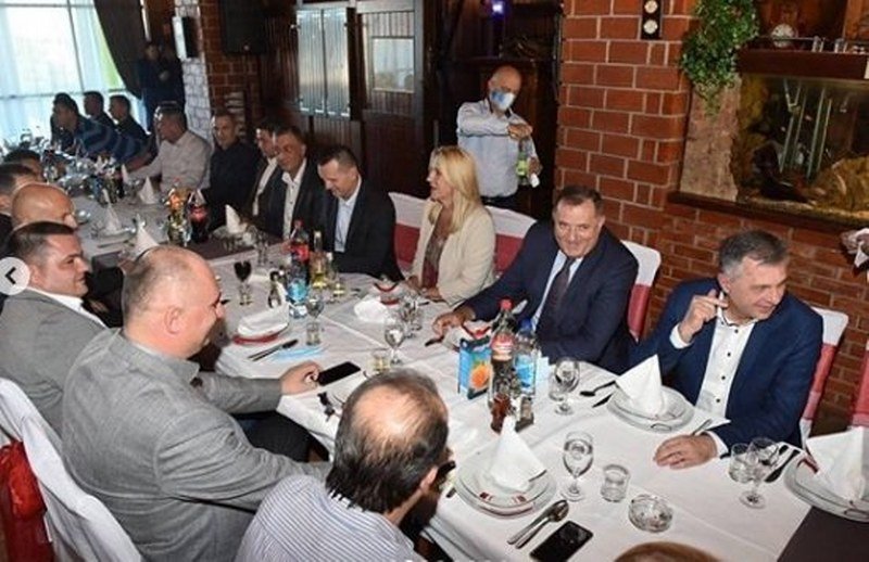 I ništa ovdje ne bi bilo sporno da na snazi nisu važeća epidemiološka pravila za zatvoreni prostor, i za ugostiteljske objekte. Sudeći prema fotografijama, niko od učesnika druženja nije imao maske, niti su se pridržavali dozvoljene distance. O razmaku stolova da ni ne govorimo, jer razmaka nije ni bilo. Klasično pretkoronaško druženje.