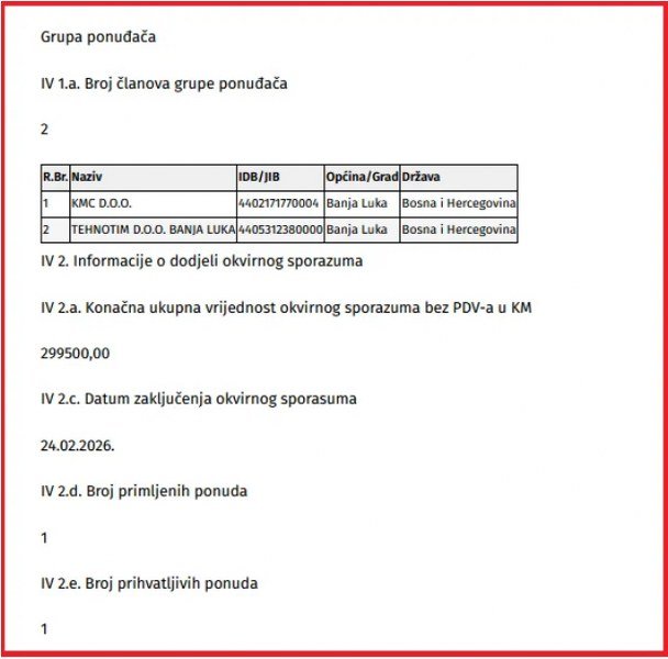 Tog 18. februara cifra na ugovoru bila je – 504.940 KM. Prethodno je uprava „Šuma RS“ otvorila jedinu pristiglu kovertu sa ponudom za računarsku opremu. Naravno, „Tehnotim“ je firma koja se ne propituje. Pet dana kasnije, takođe na osnovu samo jedne ponude, ista firma dobija još jedan posao u „Poštama RS“. Za „opremu za modernizaciju i rekonstrukciju mreže i rekonstrukciju pasivne mreže“ ugovor je bio vrijedan 89.956 KM.
