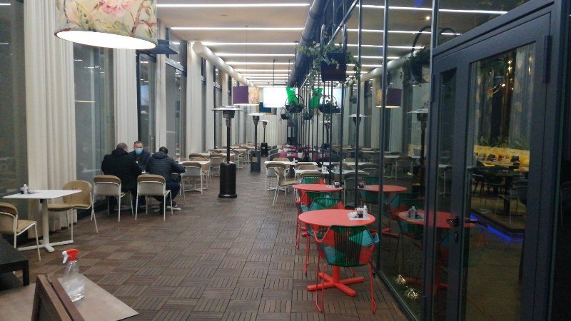 Restoran ne poštuje mjere Republičkog štaba za vanredne situacije, jer je bašta u sklopu restorana zatvorena staklima sa svih strana, umjesto da je otvorena sa najmanje tri strane, kako to mjere propisuju.