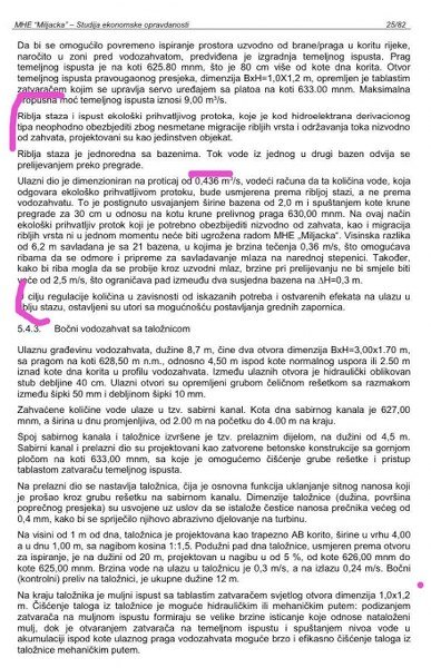 Dalje se navodi da je: „Riblja staza jednoredna sa bazenima. Ulazni dio je dimenzioniran na proticaj od 0,436 m3/s, vodeći računa da količina vode,koja odgovara ekološki prihvatljivom protoku, bude usmjerena prema ribljoj stazi a ne prema vodozahvatu“.
