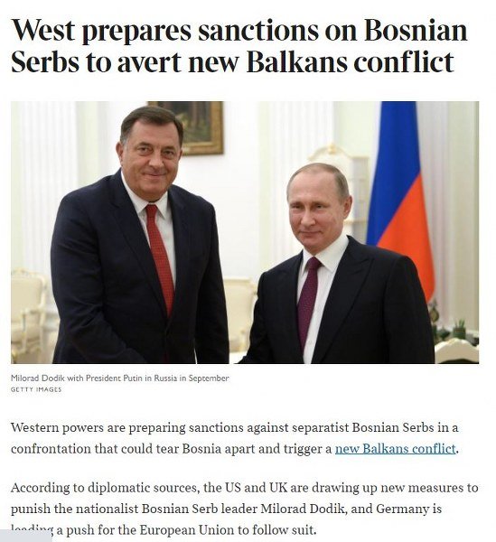 Londonski Tajms piše da zapadne sile pripremaju sankcije protiv lidera u BiH, čiji bi potezi, prema njihovoj ocjeni, mogli dovesti do raspada BiH i pokrenuti novi sukob na Balkanu.