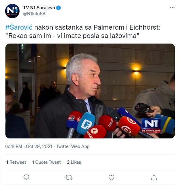 “Razgovarali smo o o opštoj situaciji u Bosni i Hercegovini. Željeli su čuti kako je mi vidimo. Ponovili smo stvari da je Izborni zakon vrlo važan za evropski put BiH jer je to jedan od uslova i prioriteta EU. Vlast sve čini da se to ne desi. Govorili smo i o izboru članova Predsjedništva. Po nama nije problema da se izostavi etnički prefiks”, poručio je Šarović.
