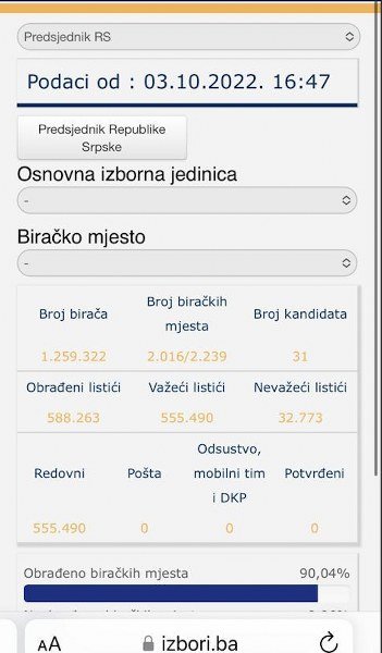 Rezultati koji se objavljuju su rzultati Dodikove masovne krađe glasova, posebno u Doboju i Zvorniku.
