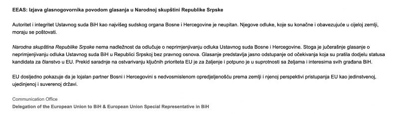 11. Ajhorst je Izvršna direktorica za Evropu pri Evropskoj službi za spoljne poslove (EEAS), a saopštenje izdano iz te institucije (EEAS) nakon početka puzajućeg državnog udara, što jeste usvajanje Zakona o nesprovođenju odluka Ustavnog suda BiH, toliko je preblijedo, da je jedva čitljivo. I, uz to, vrlo mučno za čitati, jer je iz njega jasno do koje mjere je Ajhorstova uz balkanskog Diktatora Dodika, što je “za žaljenje”!