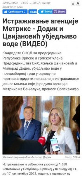 Poslednjih dana zatrpani smo brojnim vijestima o nekakvim istraživanjima javnosti i anketama sa prognozama rezultata Opštih izbora koji će se održati 2-og oktobra. Tako su režimski mediji objavili vijest kako se Dodik tobože pohvalio kako će ubjedljivo i lako pobijediti na izborima, te se pozvao na istraživanje agencije „Matriks“ iz Banjaluke.