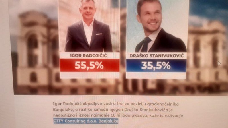 Koliko su njegova podmetanja i „istraživanja“ mjerodavna pokazuje informacija da je nekoliko dana prije lokalnih izbora, održanih u novembru 2020. godine, najavio da će Igor Radojičić pobijediti Draška Stanivukovića sa 20% razlike a izgubio je sa 10%, što znači da su „omanuli,“ za 30%. Tada su istraživanje radili preko agencije „Siti konsalting D.O.O Banjaluka, koja je registrovana na istoj adresi.