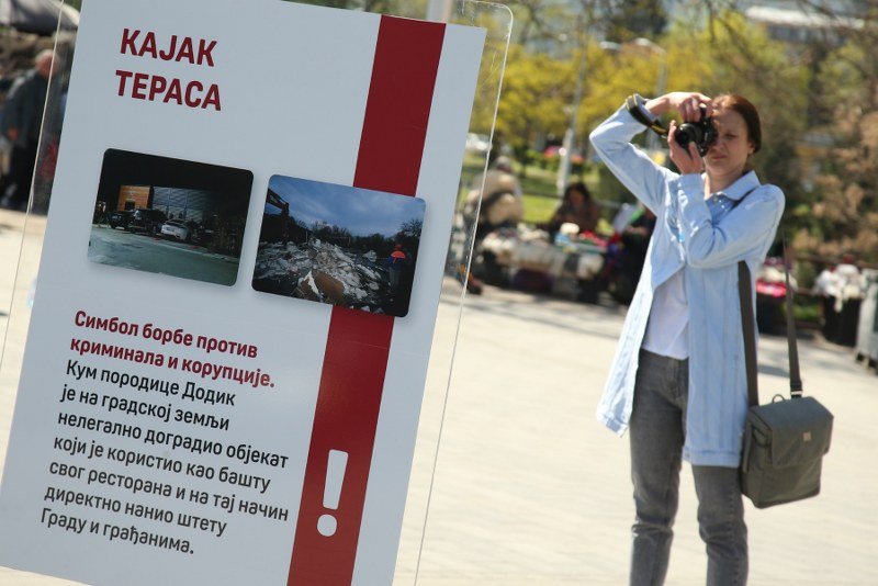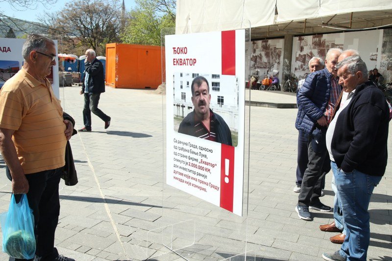Na manjim bilbordima se mogu vidjeti razni projekti koje prema natpisima predstavljaju simbole korupcije, slučaj “Kajak” i “Ekvator”, nelegalno postavljeni bilobordi u gradu, nestali ekspres restoran iz “Akvane”.