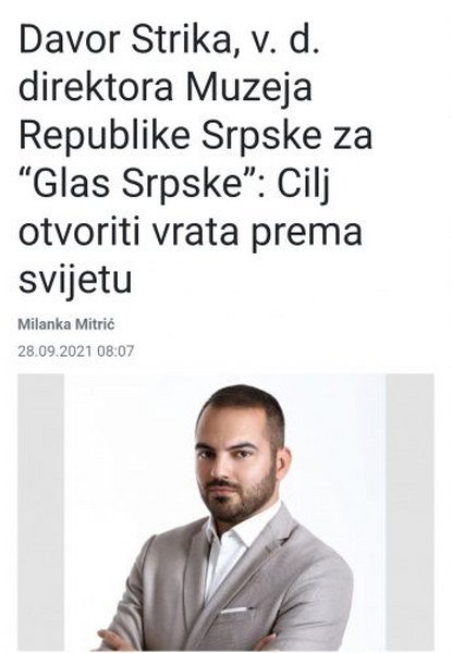 Živko Marjanac, koji je Đokiću sve vrijeme čuvao leđa, isto je pušten niz vodu. Poziciju Marjanca dobio je mlađani Davor Strika, i tako se našao u strogom sukobu interesa jer je striktno propisano zakonom da direktor Muzeja Republike Srpske ne može biti na poziciji u stranačkim organima. Svakako da ću o ovoj zloupotrebi ispitati resornu ministarku, popečiteljku kulture i prosvjete Nataliju Trivić u nastavku zasjedanja.