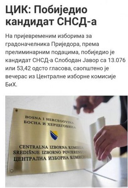 Žao mi je Prijedorčana, jer nisu pokušali da nešto bar malo promijene, kaznili devijacije, sveopšte ludilo i anarhiju, dali povjerenje dr Goranu Predojeviću, a žao mi je i doktora Predojevića koji je poražen na vanrednim lokalnim izborima, a realno nema njegove odgovornosti niti krivice za poraz. Ovoga sam se i pribojavao, pa sam upravo zbog toga pozivao uporno Prijedorčane samo da izađu na izbore, jer sam znao da će SNSD na silu izvesti svoje pristalice i da se oni mogu pobijediti samo masovnim izlaskom građana na izbore i visokom izlaznošću.