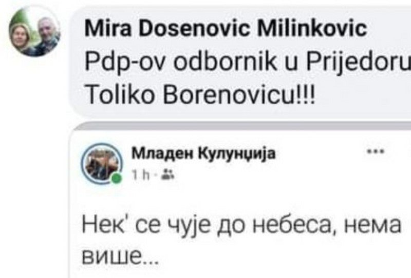 Narod je previše izvaran i razočaran proteklih 20 godina i samo se iskrenom borbom bez kalkulisanja i dvostrukih igara može pokrenuti. Žao mi je dr Predojevića jer nije pobijedio, a bio bi dobro rješenje za Prijedor, ali mlad je i biće prilika, treba se ustati nakon jednog poraza. Ipak ovo je crveni alarm za opoziciju i upozorenje da se problemi ne smiju stavljati pod tepih već odmah rješavati, jer je do Opštih izbora ostalo malo vremena, nešto više od 10 mjeseci.