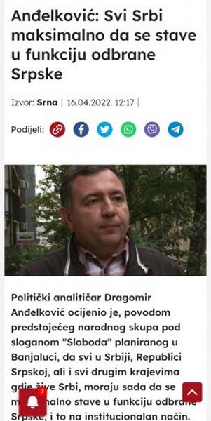 Kao i svaki put, na površinu izađe bulumenta njegovih ljudi iz sjene, koji iza sinekuse narodnih jasala kliču lažnom ocu nacije, i pozivaju narod na proteste.Zbog toga ne čudi horsko pjevanje Dodikovog slavuja iz sjene, Cicka Bjerlice, Nenada Nešića, Aleksandra Pavića, Anđelkovića, Rakovića i drugih lažnih analitičara i plaćenika koji će do srijede graktati u režimskim medijima i na mig službe davati unaprijed napisane izjave.