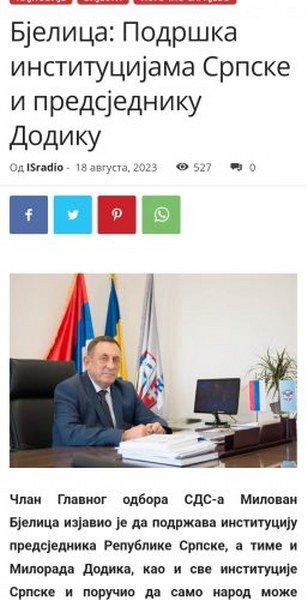 P.S. Skutonoša SNSD-a, na zadatku novinara RTRS-a Branimir Đuričić, ali i drugi, uporno me prozivaju da se oglasim povodom zabrane ulasku u Hrvatsku predsjedniku Udruženja novinara Republike Srpske Danijelu Simiću. Naravno da ne podržavam bilo kakvo ograničenje kretanja, slobode govora i revanšizam, ali sam poslednja adresa kojoj se treba obratiti jer je poznato ko je prijatelj Milanovića i Hrvata, zastupnik hrvatske politike i interesa koji se redovno ispovijeda u Zagrebu i kome se treba obratiti za rješavanje ovog problema.