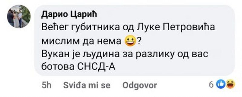 I najveći bot među crvenim botovima, đeneral armije botova i gen-sek Partije Laki Lučiano Petrović napisao je objavu o „Gubitniku“, na svojoj stranici, al najzanimljivije je da čak i njegovi pratioci pokazuju divljenje i pišu pozitivne komentare o meni, što je jasan pokazatelj kakvo je raspoloženje javnog mnjenja.