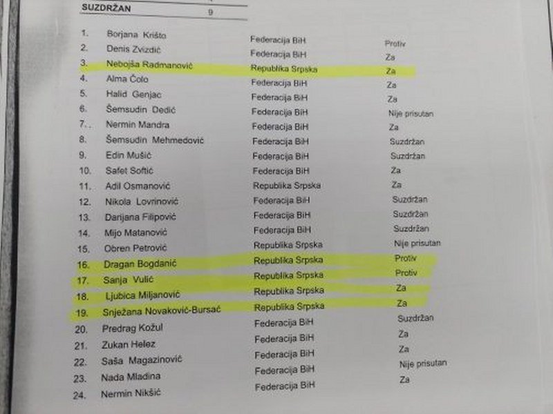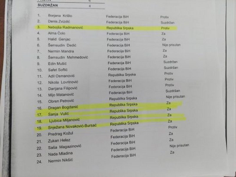 Da je SNSD pred potpunim rasulom, da tihi rat zaraćenih frakcija polako dostiže kulminaciju pokazuje i glasanje poslanika iz Kluba SNSD-a u Predstavničkom domu Parlamentarne skupštine BiH.