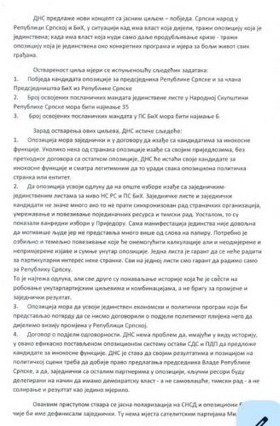 Pročitajte Prijedlog koji je DNS uputio opozicionim strankama: