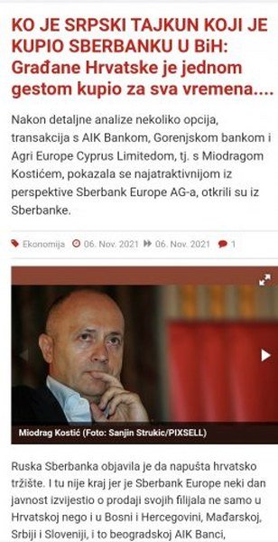 Prošle godine u medijima se pojavila informacija da je biznismen iz Srbije Miodrag Kostić i njegova AIK banka kupili Sberbanku u regionu, Austriji, Hrvatskoj, BiH, Srbiji, Sloveniji i Mađarskoj, pa se postavlja da li je i samo rusko ime i naziv banke bilo dovoljno za uvođenje sankcija?