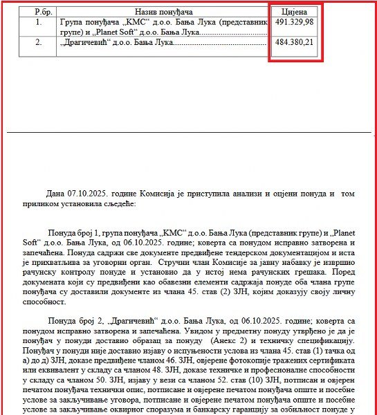 Iako je njegova i ponuda firme "KMC" za gotovo 7.000 KM bila skuplja od ponude firme „Dragičević d.o.o“, koja je godinama ovaj posao radila u gradskoj administraciji, to ga u Stanivukovićevim očima 15. oktobra nije spriječilo da bude pobjednik. Pobjednik i de facto i de jure. Izvori Žurnala navode da su mašine izabranih, bez zvanično potpisanog ugovora i dok traje period žalbe, već instalirane po kancelarijama, a raniji ugovor sa firmom "Dragičević" još je aktuelan.