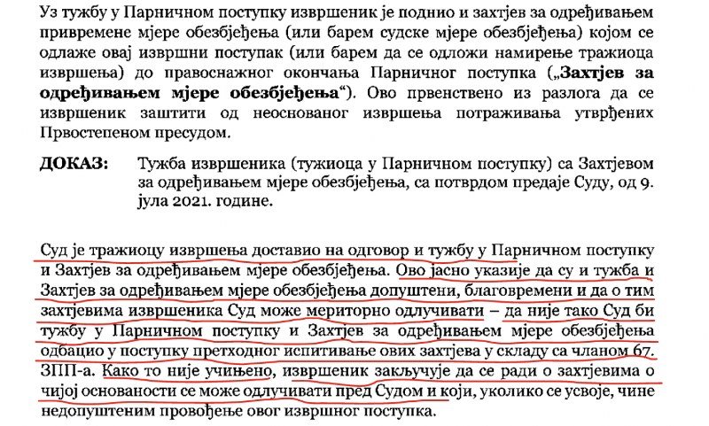 Evo šta kaže “Integra Inženjering”, preko svog ‚‚mastera advokata" Dimitrijevića u prigovoru na odluku o izvršenju, a gde pominje njihovu nedopuštenu tužbu: