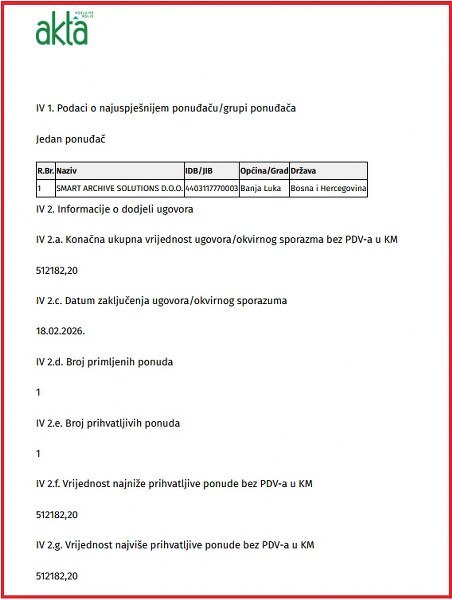Ipak, najizdašniji proteklog januara bio je Fond zdravstvenog osiguranja Brčko distrikta. Integrisani sistem za upravljanje dokumentima i arhivom košta 642.333 KM. Zanimljivo, kao i obično, Karanov „Smart Archive Solutions“ jedini se javio.