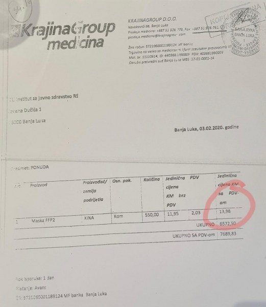 To se dešavalo u vrijeme vanrednog stanja, kada su građani zatvarani u kuće zbog pandemije, a "ozbiljni ljudi", kako se sebe nazivali iz Ujedinjene Srpske bavili su se ozbiljnim kriminalom, čemu svjedoči faktura koja je u našem posjedu o nabavci zaštitnih maski.