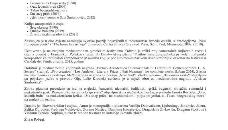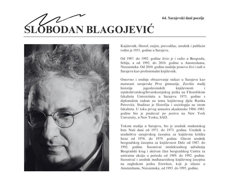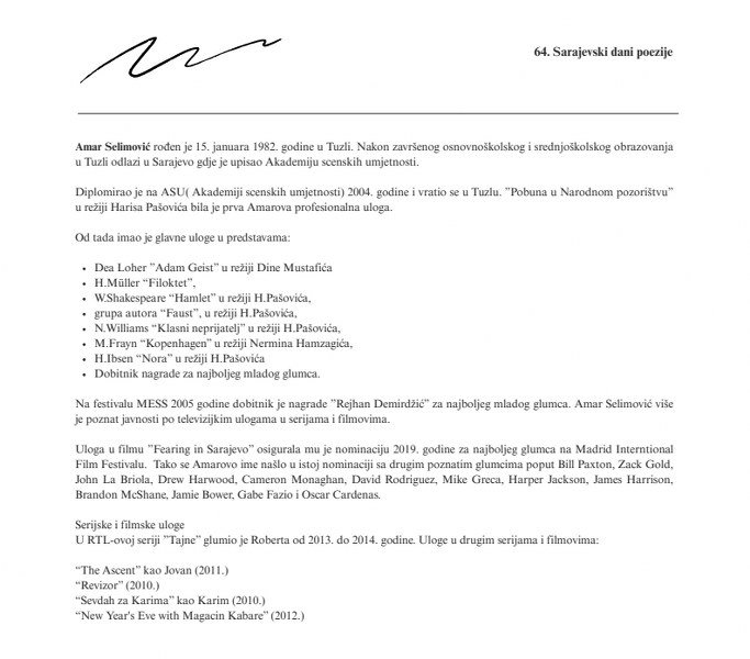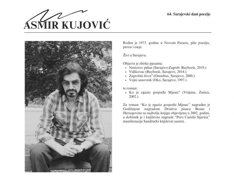 Na 64. manifestaciji "Sarajevski dani poezije" koji traje od 15. – 19. oktobra, u programu koji se održao u četvrtak 16.10.2025. godine u Galeriji Muzeja književnosti i pozorišne umjetnosti BiH (Sime Milutinovića Sarajlije br. 7). organizovano je Pjesničko druženje uz čitanje poezije na kojem su sudjelovali: Marko Pogačar (Hrvatska), Faiz Softić (BiH/Luxemburg), Chris Lauer (Luxemburg), Goran Samardžić (BiH), Olja Runjić (Hrvatska), Aleksandra Čvorović (BiH), Mustafa Zvizdić (BiH) i Amir Talić (BiH).
