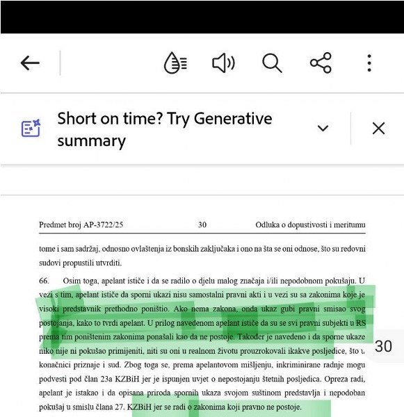 "66. ...apelant ističe i da se radilo o djelu malog značaja i/ili nepodobnom pokušaju. U vezi s tim, apelant ističe da sporni ukazi nisu samostalni pravni akti i u vezi su sa zakonima koje je visoki predstavnik poništio".