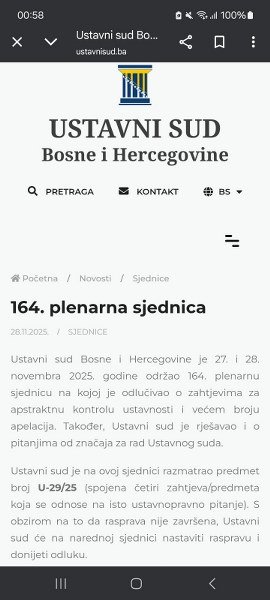 Međutim, u petak 5.12.2025. godine Ustavni sud BiH je saopštio da će njegova naredna (vanredna plenarna) sjednica biti održana 9.12. ove godine, da joj je predmet samo jedna tačka (zahtjev Darka Babalja za ocjenu ustavnosti Zakona o finansiranju političkih organizacija), a da će naredna 165. redovna plenarna sjednica tog suda biti održana 15.12.2025. godine. Međutim, ni na toj sjednici neće biti nastavljena rasprava niti će biti odlučivano o zahtjevu za ocjenu ustavnosti odluke o imenovanju tzv. vlade Save Minića.