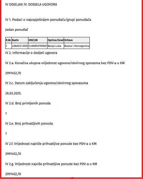 Fond zdravstvenog osiguranja RS i direktor Dejan Kusturić tehničku podršku za Oracle opremu i sistem za nadzor, inspekciju i upravljanje aktivnostima korisnika IT usluga plaća 204.633 KM. Tenderskim apsurdima vođeno, podobnog ponuđača ne propušta ni Ministarstvo prosvjete i kulture Republike Srpske. Na primjer, odluči da IKT opremu smjesti u škole, u kojim djeca na časovima informatike još koriste sveske i olovke. „Lanaco“, jedini ponuđač, dobija posao vrijedan tačno 3.500.000 KM. Potom ista kompanija bude izabrana i za održavanje jedinstvenog informacionog sistema Ministarstva – 2.100.000 KM. Ministarstvo uprave i lokalne samouprave RS softver održava za 349.830 KM.
