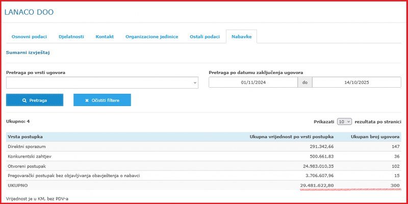 Onog dana kada se IT tender uspješnici „Prointer“ smrklo zbog američkih sankcija, ponovo je svanulo firmi „Lanaco“, u vlaništvu jednog od osnivača SNSD-a Nebojše Ninića. Ni cijela godina nije bila potrebna da broj ugovora za poslove finansirane javnim novcem zaokruži na 300, a njihovu vrijednost na gotovo 35 miliona KM.