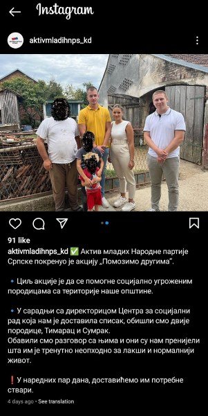 Oni su na instagram profil svog Aktiva mladih “aktivmladihnps-kd” iz Kozarske Dubice postavili fotografiju na kojoj informišu javnost kako su pokrenuli akciju “Pomozimo drugima”, a cilj navedene akcije je, kako tvrde, “da se pomogne socijalno ugroženim porodicama sa teritorije opštine Dubica”.