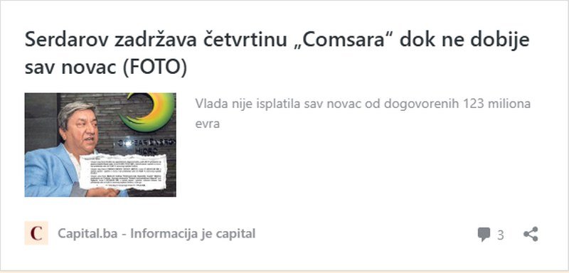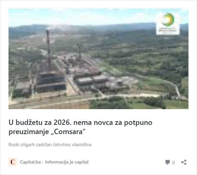 Dodatni problem, o čemu je takođe pisao CAPITAL, leži u činjenici da Vlada Republike Srpske u budžetu za 2026. godinu nije uopšte planirala sredstva za isplatu preostalih 60 miliona maraka i potpuno preuzimanje preduzeća „Comsar energy RS“.