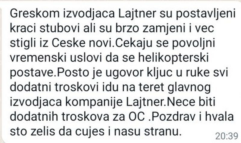 Predsjednik Upravnog odbora Olimpijskog centra Jahorina i Gospodar planine Nedeljko Elek kaže da je za propust odgovorna češka firma „Lajtner“, koja je pod čudnim okolnostima dobila posao na „poštenom“ tenderu, i da Lajtner snosi sve troškove.