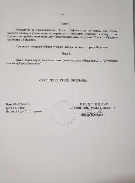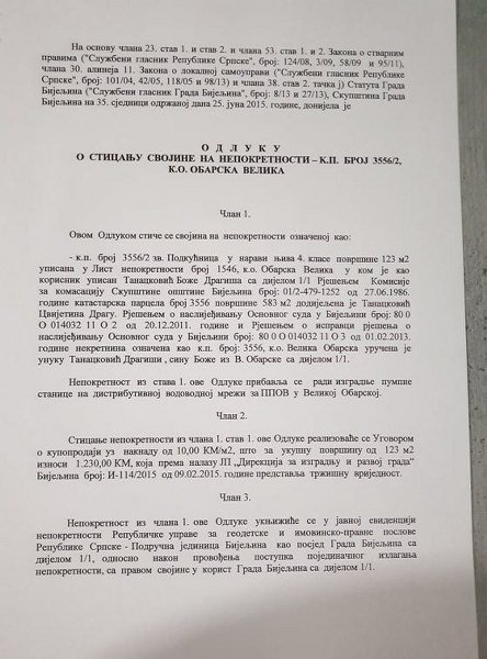 A istina vezana za to kako je Dragiša uz nadoknadu ustupio svoje zemljište je sledeća. Prilikom izgradnje Prečistača otpadnih voda u naselju Velika Obarska, koji je građen iz donatorskih sredstava, bilo je potrebno izgraditi i pumpnu stanicu za povećanje pritiska u vodovodnoj mreži za veći dio domaćinstava koja se nalaze u neposrednoj blizini Prečistača a kojima je obećano da će bez učešća dobiti vodovodnu mrežu zato što su prihvatili gradnju Prečistača u blizini svojih kuća. Kuće većeg broja tih domaćinstava se nalaze na većoj nadmorskoj visini od Prečistača i neophodna je bila gradnja pumpne stanice. Samo nekoliko lokacija je pružalo mogućnost da se sa što manje finasijskih sredstava riješi taj problem a najpovoljnija je bila Dragišina lokacija. Njegovim prihvatanjem da ustupi dio svoje potkućnice od 123 m2 omogućeno je da se izgradi visokonaponski dalekovod dužine samo 3.200 metara a ne veći, što su iziskivale druge lokacije. A onda je izgrađeno i 11.216 metara vodovodne mreže za pomenuta domaćinstva i sve to iz rezervnih donatorskih sredstava. Danas je pomenuta pumpna stanica u neposrednoj blizini Dragišine kuće što, priznaćemo, nije ni malo prijatno. Procjenu vrijednosti Dragišine zemlje je izvršila Direkcija za izgradnju i razvoj grada i ona iznosi 10 KM/m2. Tako je Dragiša za svoja 123 m2 djedovine i potkućnice dobio 1.230 KM. Znači, Dragiša Tanacković nije trgovao sa Vodovodom u kome je radio, nego sa opštinom, odnosno gradom Bijeljina i tadašnjim gradonačelnikom. Tih 123 m2 djedovine ispred svoje kuće a ne Vodovodovog ili nečijeg tuđeg zemljišta je prodao po realnoj cijeni i dobio 1.230,00 KM. Da li je moguće da milionska pljačka imovine građana Bijeljine, koju je izvršilo samo nekoliko ljudi protiv kojih su podnijete krivične prijave od strane gradonačelnika Bijeljine Ljubiše Petrovića nije vijest a jeste prodaja 123 m2 nečije djedovine za 1.230,00 KM?