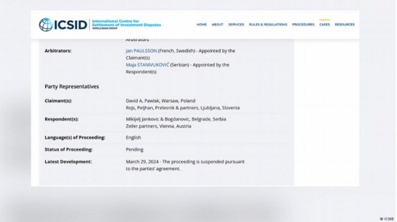 Do aprila 2026. godine odložena je aktivacija tzv. „investicione arbitraže“ pred sudom u Vašingtonu (ICSID). Ovo je „zamrznut“ spor koji Slovenija drži kao rezervnu opciju, neki je tumače kao ucjenu, ukoliko Republika Srpska ne ispuni obaveze iz već presuđenog spora u Beogradu.