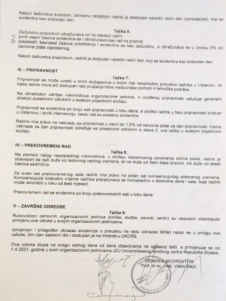 Posebno je tragikomična tačka 6. u kojoj se donose promjene o dežurstvu tokom prazniika.