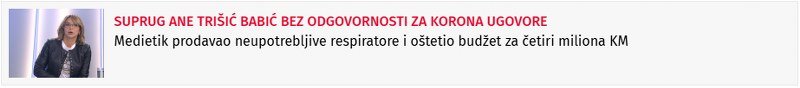 Isto Tužilaštvo svojevremeno je saopštilo kako je FZO od "Medietika" nabavio 85 neupotrebljivih respiratora i da je ta firma oštetila budžet RS za više od četiri miliona KM. Željko Babić, suvlasnik firme i suprug Ane Trišić-Babić zbog toga nije i neće odgovarati.