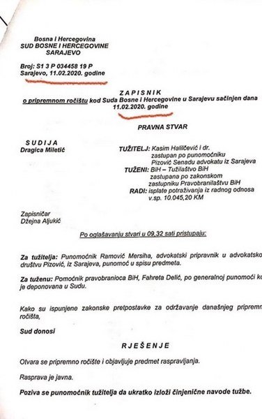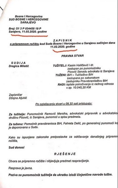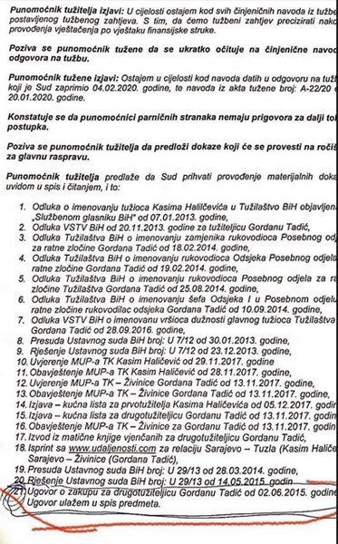 Prvi put, glavna državna tužiteljica je nevažeći ugovor upotrijebila 31. decembra 2019. godine ili, u prevodu, devet mjeseci nakon što ga je raskinula. Nevažeći ugovor Gordana Tadić je priložila u tužbi protiv Bosne i Hercegovine kojom je tražila naknadu troškova za smještaj u stanu Milana Milidraga za period mart-decembar 2019. godine. A ugovor tada nije važio.