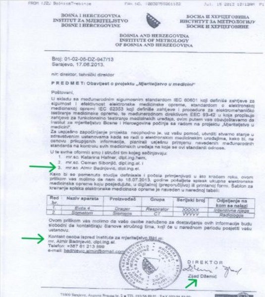 Važno je još reći da ovu podvalu vezanu za verifikaciju medicinskih uređaja je režirana još davne 2013./2014. godine, od strane prethodnog direktora Instituta za metrologiju BiH Zijada Džemića i tadašnjeg radnika tog istog Instituta, a posle vlasnika laboratorije „Verlab“ Almira Badnjevića, kojem je gle čuda dodjeljen posao verifikacije navedenih uređaja, kada su nezakonito doneseni Propisi na nivou BiH, bez saglasnosti iz Republike Srpske i bez saglasnosti Savjeta za metrologiju, gdje su tada 10 navedenih uređaja postali mjerila, koje hrvatski dio federacije BiH nije nikada prihvatio, ali i neki u bošnjačkom dijelu nisu dozvolili da im tadašnja SDA ekipa Džemić/Badnjević izvlače novac na osnovu ničega.