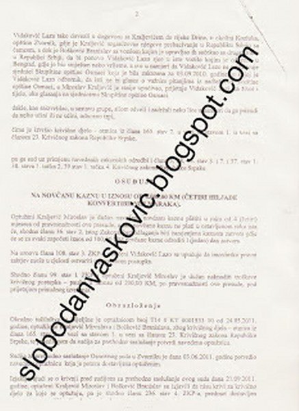 Osnovni sud u Zvorniku donio je 06.03.2012. godine presudu kojom je Miroslav Mićo Kraljević osuđen za krivično djelo otmice.