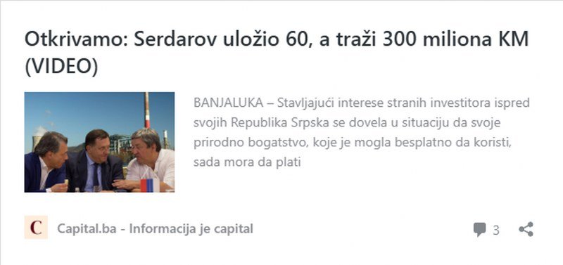 Iako je Vlada Republike Srpske najavila potpuno preuzimanje preduzeća „Comsar energy RS“, a koje je nosilac koncesije za površinski kop „Ugljevik-istok 2“, ruski oligarh Rašid Serdarov će, barem za sada, zadržati četvrtinu vlasništva, otkriva portal CAPITAL.