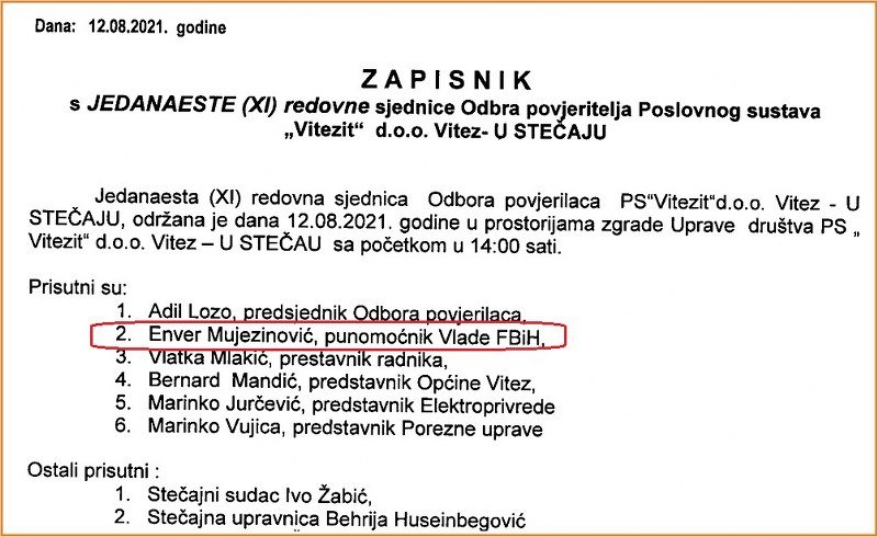 Pravobranilaštvo FBiH nije reagovalo i dopustilo je da osoba koja praktično nema saglasnost Vlade - Enver Mujezinović, je svo proteklo vrijeme neovlašteno predstavlja u Odboru povjerilaca! Dokaz tome je dopis ministra Nermina Džindića stečajnom sudiji Ivi Žabiću upućeno 29.11.2021.