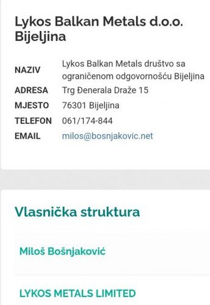 Ovu firmu osnovala je matična korporacija Likos metals limited i Miloš Bošnjaković, najveći akcionar magične kompanije. Problem je u tome što su vlasnici akcija ove kompanije visoki vladini službenici koji su učestvovali i pogodovali da Likos dobije koncesije na rudnike i započne istraživanja litijuma na Ozrenu!