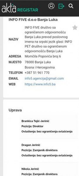 Vlasnik kompanije „Info five D.O.O“ je Dragan Džeri Jerinić i članovi njegove proodice, a njegova supruga je glavna urednica portala koji je objavio intervju sa Majklom Marfijem. Poznato je da američki ambasador neće baš svakom da daje intervju, a izgleda da tajne veze još od pokojnog Kopanje i Nezavisnih novina, čiji je urednik ranije bio Jerinić a koji su promovisali i Dodika i Amerikance i zapad, nikada nisu prekinute.