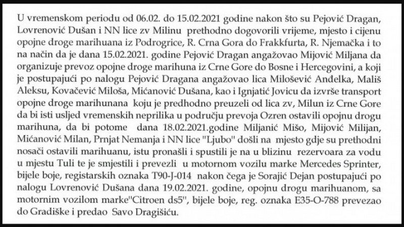 - Ova grupa je dobivala informacije od policijskih službenika i imala svoje ljude u svim strukturama - stoji u dokumentima Tužilaštva.