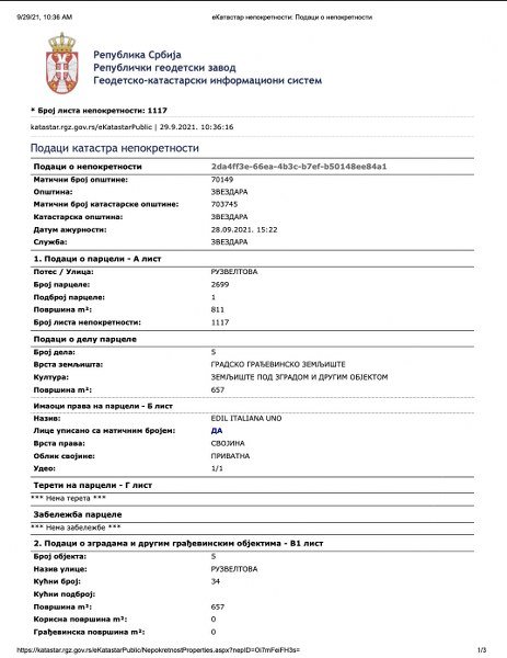 Uz to, kupio je i stan u Beogradu, u Ruzveltovoj ulici broj 34, koji je platio 203.000 evra.