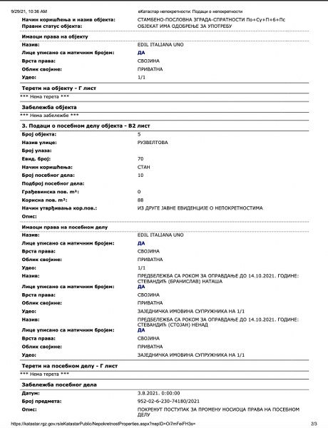 Stan je kupio početkom avgusta ove godine.