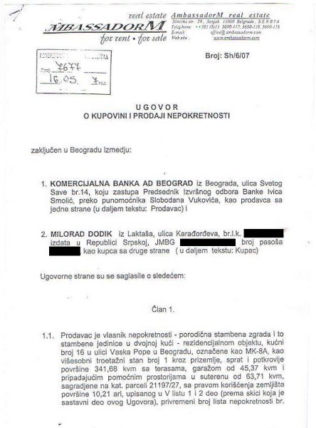 14, Da podsjetim, Dodik je 14.05.2007. godine, preko “Pavlović banke”, 750.000 evra prebacio na račun Komercijalne banke u Beogradu, koja je i bila vlasnik vile na Dedinju.