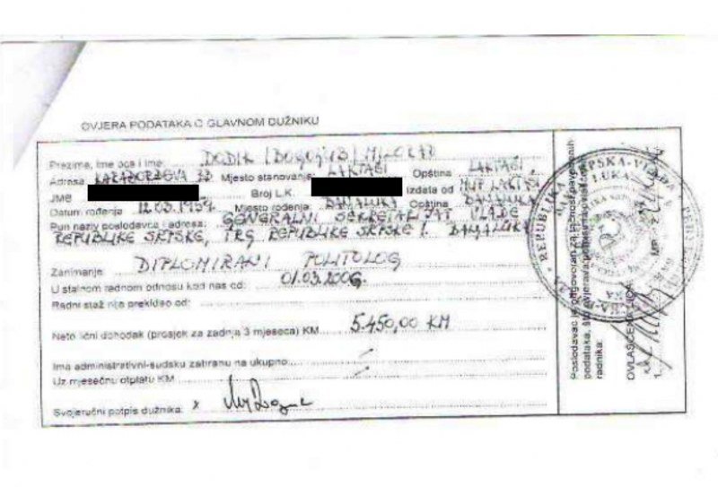 Provjerama u Centralnoj banci BiH, utvrđeno je da ne postoji nikakav kredit dat Dodiku 2007. godine.